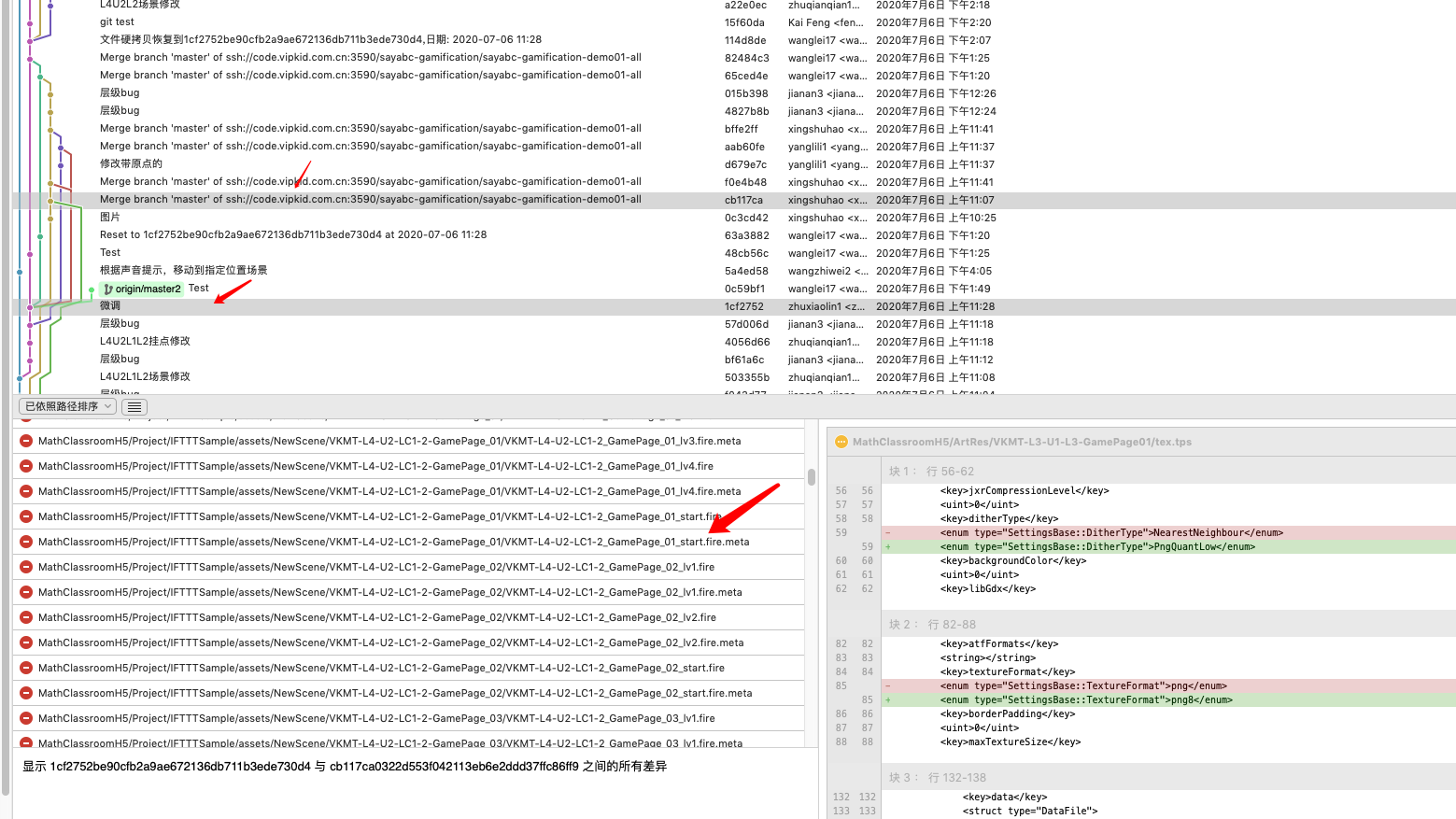 2)查找办法: 选择一个没有问题的版本A + 按照command按键 + 选择附近的版本B 挨个比对