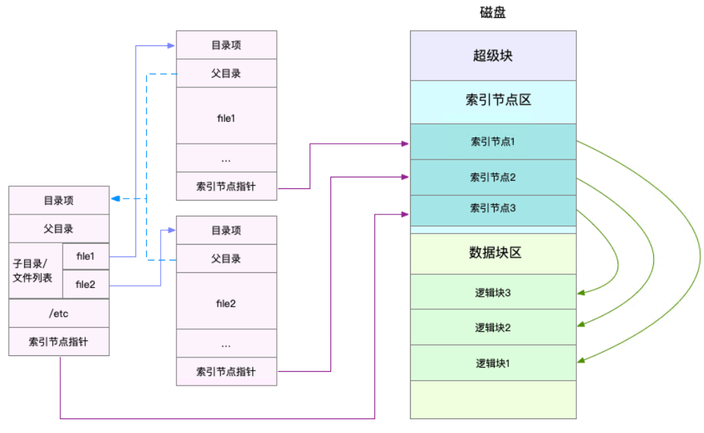 Linux 文件系统为每个文件 都 分配两个数据结构,索引节点(indexnode)和目录项(directory entry)。它们主要用来记录文件的元信息和目录结构。
