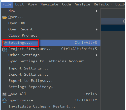 1.首先我们需要安装IntelliJ IDEA中的lombok插件,打开IntelliJ IDEA后点击菜单栏中的File-->Settings,或者使用快捷键Ctrl+Alt+S进入到设置页面。