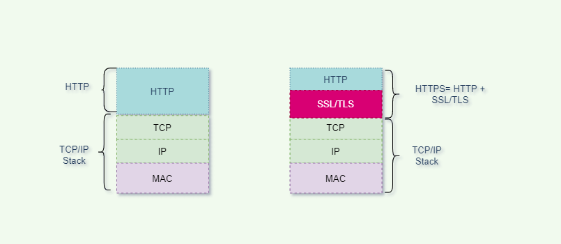 就是因为他在 TCP/IP 与 HTTP 之间加上了 SSL/TLS ,从原来的 HTTP over TCP/IP 变成了 HTTP over SSL/TLS,让 HTTP 运行在 安全的 SSL/TLS 协议上,安全开车。