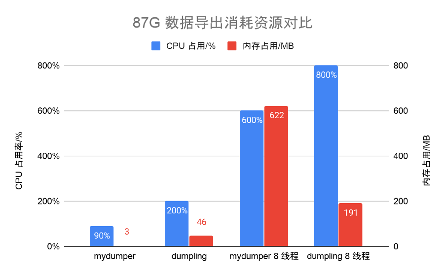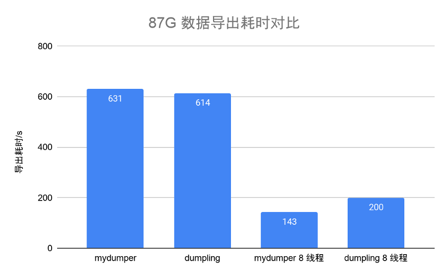 dumpling 8 线程:八线程,使用 -t 8 -r 500000 参数开启表内并发。