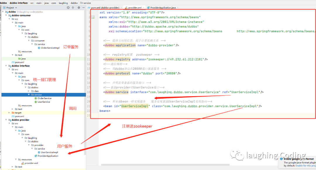 /dubbo/com.foo.BarService/providers目录下写入自己的 URL 地址服务消费者启动时: 订阅