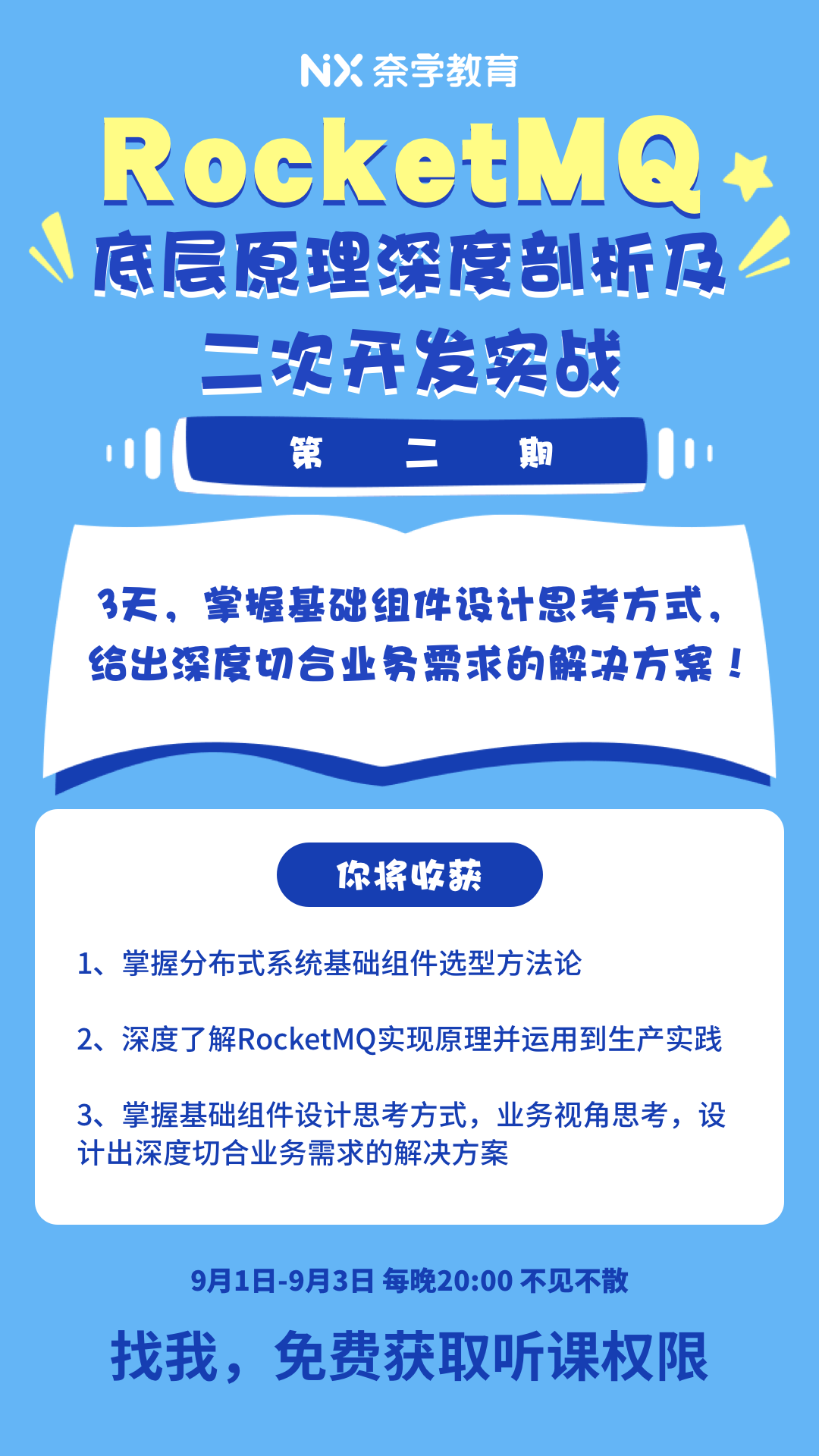 公司在引入基础组件时,需要根据公司业务场景选择合适的基础组件。一般我们需要调研组件技术性能,开源社区活跃程度等。大型的软件公司,OLTP场景下都会倾向于使用RocketMQ。现在很多技术同学只停留在如何使用上,对于基础组件的实现细节,设计思考知之甚少,更别说二次开发,做满足业务需求的定制化改造了。