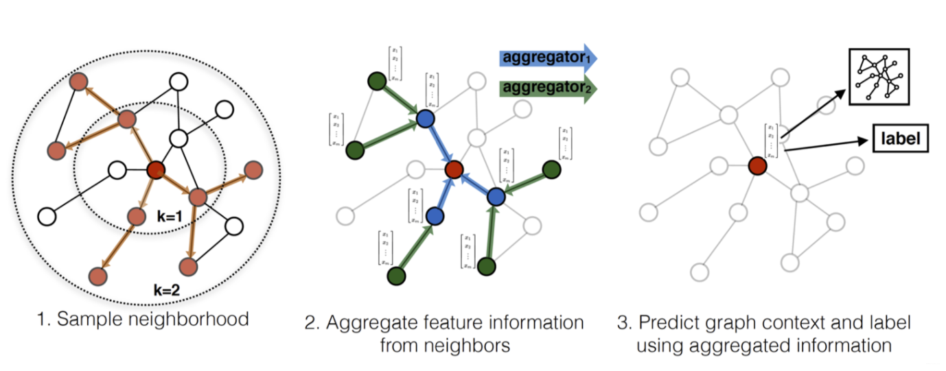 Specifically, the sampling process in GraphSage is divided into three steps (corespond to the figure above):