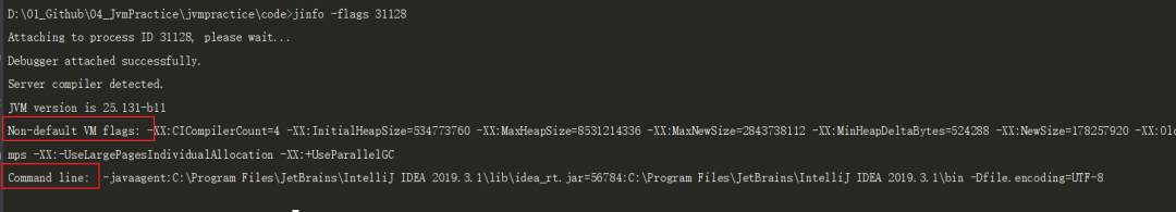 动手实验 10 - 查看 JVM 自动配置的或者用户手动设置的XX选项(非应用程序的)