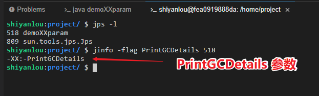 本实验主要讲解如下内容:查看运行的 Java 程序 PrintGCDetails 参数是否开启