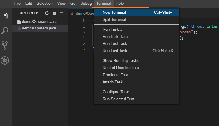 在 WebIDE 的控制台窗口编译 demoXXparam.java 代码