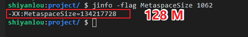jinfo -flag MetaspaceSize 1062