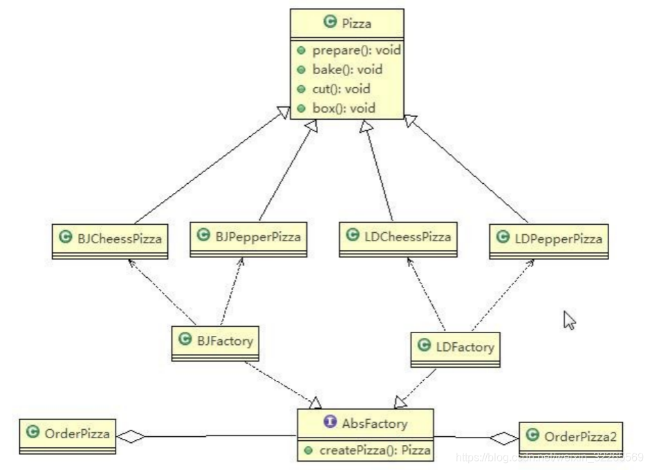 使用简单工厂模式,创建不同的简单工厂类,比如 BJPizzaSimpleFactory、LDPizzaSimpleFactory 等等.从当前这个案例来说,也是可以的,但是考虑到项目的规模,以及软件的可维护性、可扩展性并不是特别好