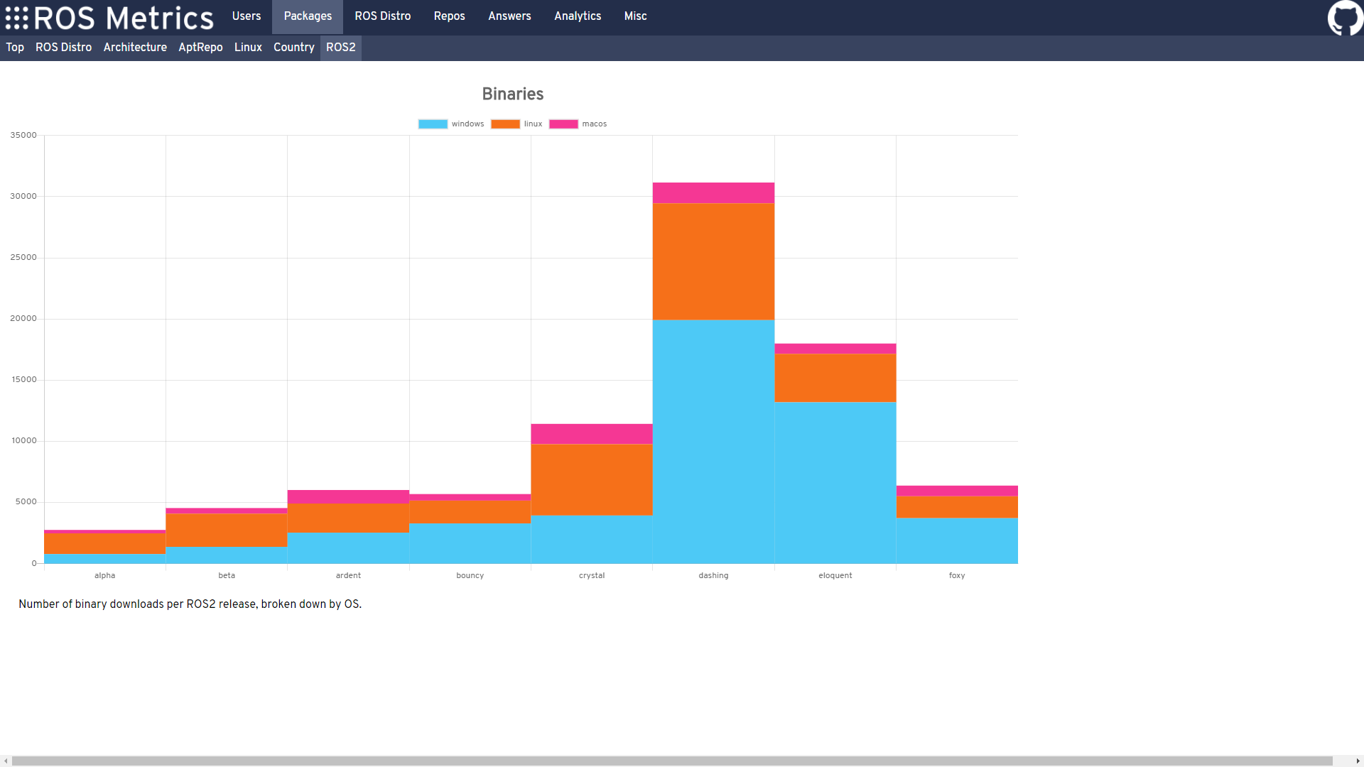 以ROS2为例,在windows系统中的使用量已经远超Linux与MacOS的总和!