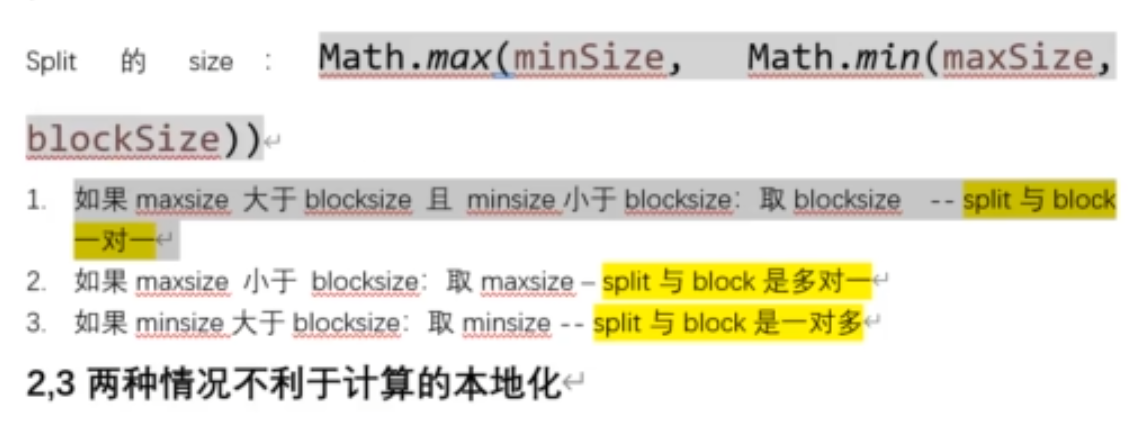 - split的大小由公式可知,取决于minSize、blockSize、maxSize三者之间的大小关系;从而也决定了split和block块的大小关系,我们在实际使用中要保证split和block是一对一的关系;