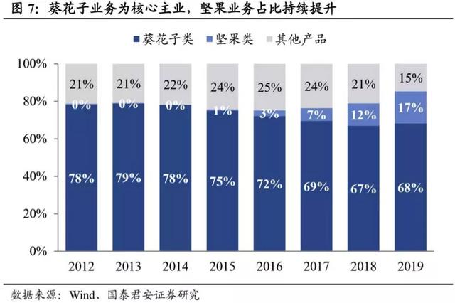 事实上,在过去几年里,葵花子类产品的收入一直稳定在65%以上,而其他产品的营收还不及卖瓜子收入的一半。