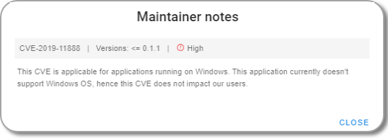 description: This CVE is applicable for applications running on Windows. This application currently doesn't support Windows OS, hence this CVE does not impact our users.