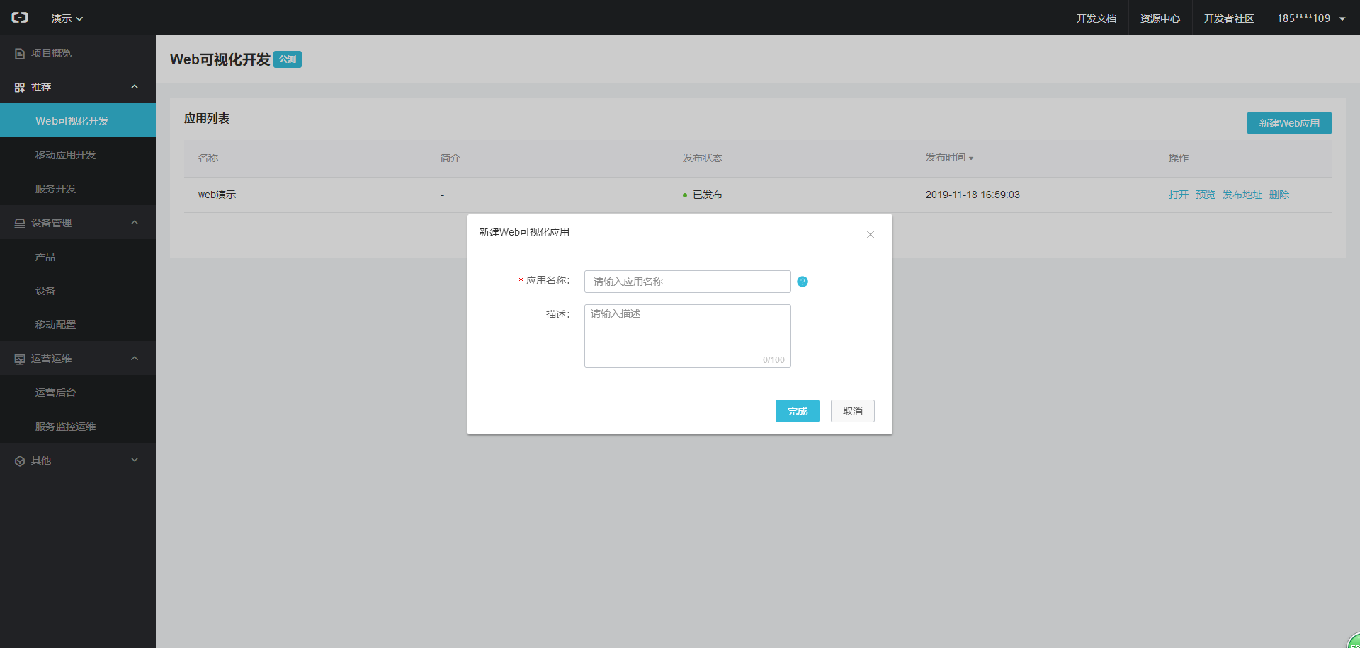 阿里云物联网平台提供了一种可快速开发的web服务,只需要拖入一些控件,做一些配置就可以完成一个简单的物联网web应用,对单一场景,需求简单的项目非常实用。