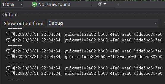 guid = $"时间:{DateTime.Now}, guid={ Guid.NewGuid()}";