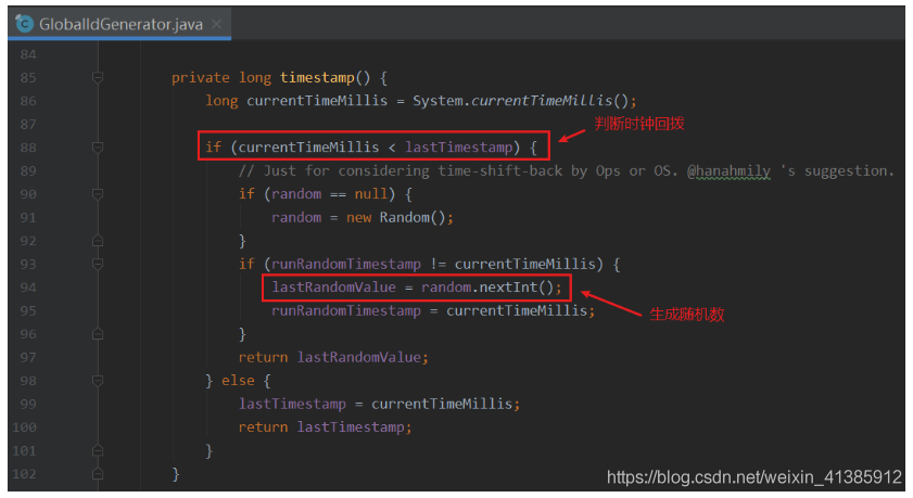 但其实时间回拨发生的概率很小(发生之后由于机器时间紊乱,业务会受到很大影响,所以机器时间的调整必然要慎之又慎),再加上生成的随机数重合的概率也很小,综合考虑这里确实没有必要再加一层全局惟一性校验。