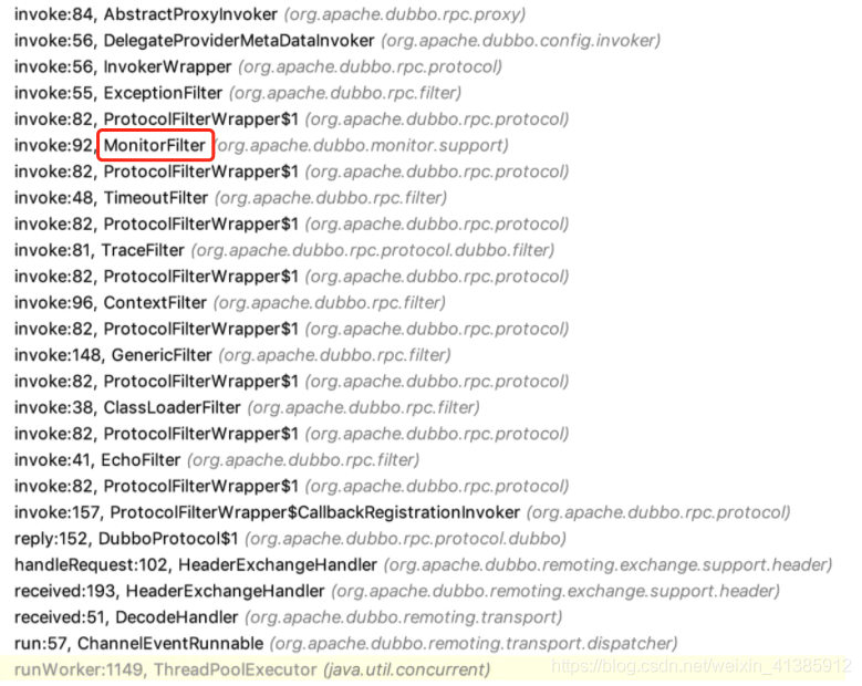 而 MonitorFilter 可以拦截所有客户端发出请求或者服务端处理请求,所以我们可以对 MonitorFilter 作增强,在其调用 invoke 方法前,将全局 traceId 注入到其 Invocation 的 attachment 中,这样就可以确保在请求到达真正的业务逻辑前就已经存在全局 traceId。