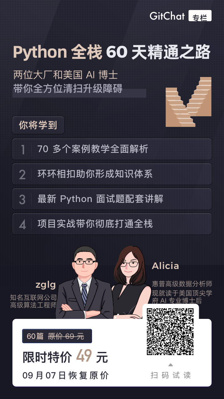 所以我提炼出过往 5 年多的工作经验,并和远在美国学府进修的 AI 博士后老师一起撰写了这个《Python 全栈 60 天精通之路》专栏。
