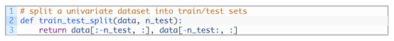 在前向验证中,首先通过选择一个拆分点将数据分为训练集和测试集,比如除去最后12个月的数据用于训练,最后12个月的数据用于测试。