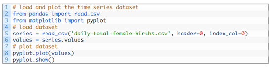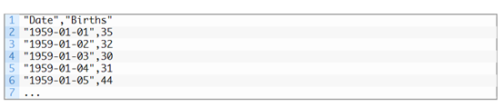 以下链接可以用于下载数据集,在本地工作目录以“daily-total-female-births.csv“的文件名导入。