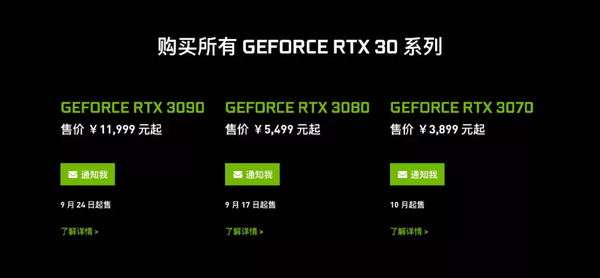 这些公版GPU的国行价格也第一时间出现在了英伟达中国官网上: