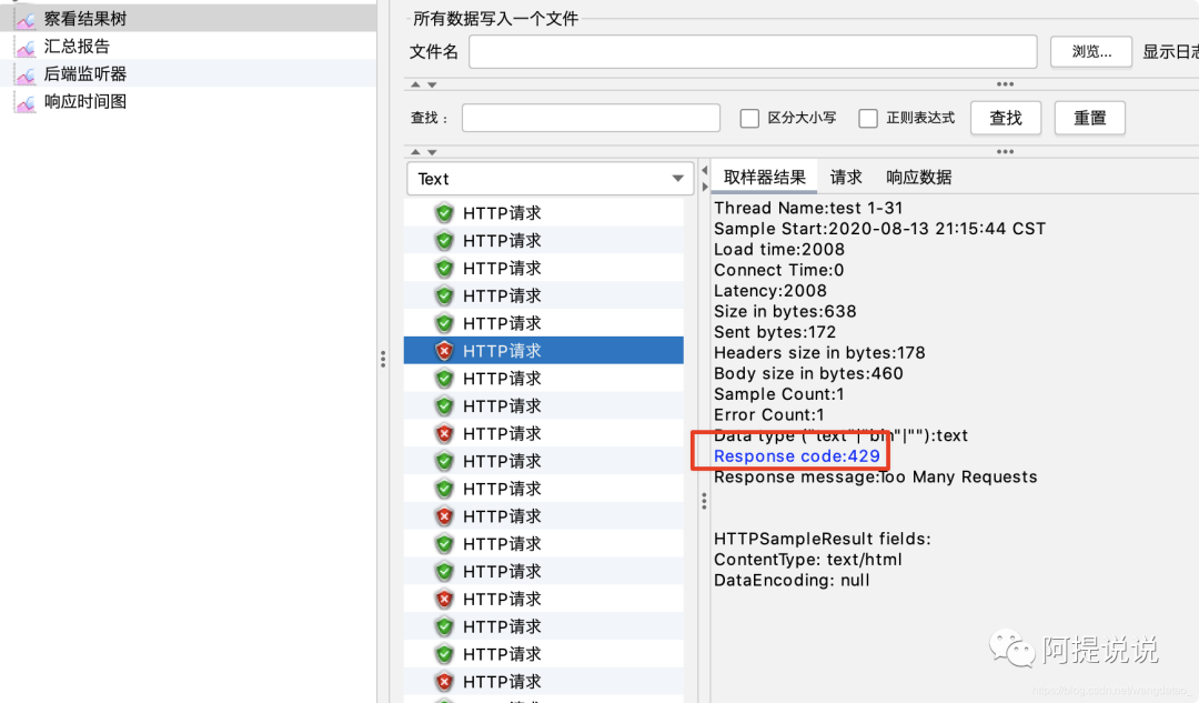 使用 limit_req_zone关键字,我们定义了一个名为mylimit大小为10MB的共享内存区域(zone),用来存放限速相关的统计信息,限速的key值为二进制的IP地址$binary_remote_addr,限速上限rate为1r/s(1次每秒);接着我们使用limit_req关键字将上述规则作用到/所有请求上。使用 limit_req_status关键字,是更改默认限速后返回的状态码。默认返回的是503(服务不可用)。burst可以理解为漏桶的容量,不设置这个值时速度达到rate后就报错,设置后有对应的缓冲。nodelay关键字,因为在”桶“中会缓存一些请求等待处理,这时在用户看来请求的时间就边长了,不是很友好。加上这个关键词就可以理解为:既然能进入桶中,那么这个请求应该就是有效的(超过桶的容量直接就报429错误了),那么就不用排队直接处理就好了。nodelay与burst共同使用时才生效