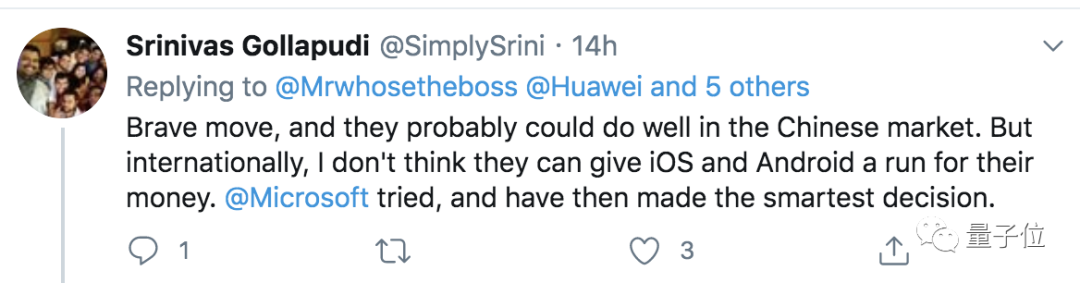 这样的发言代表了推特上面关注华为的网友大多数的态度,他们认为,第三种系统生态能够激活市场竞争机制,最终获益的是用户本身。