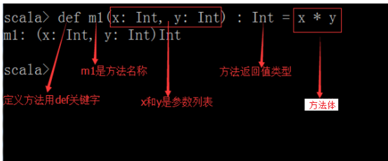def methodName (参数名:参数类型, 参数名:参数类型) : [return type] = {