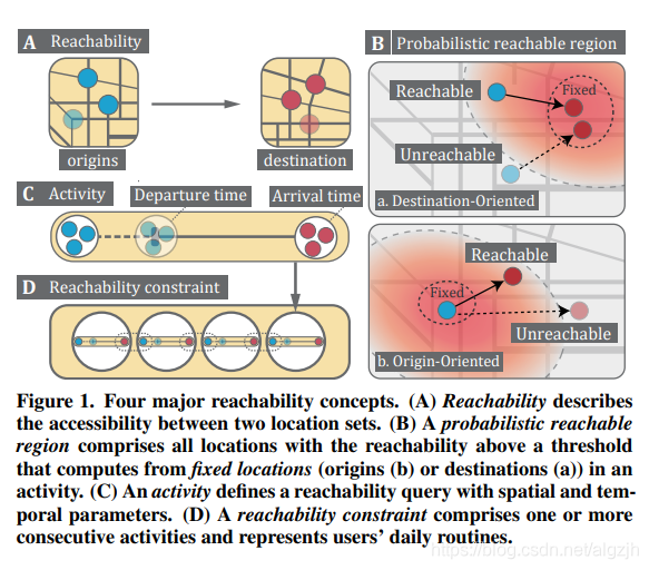 - 设计了一个新的基于图的索引和查询算法的可达性模型,以有效地估计具有大量轨迹的位置的可达性。