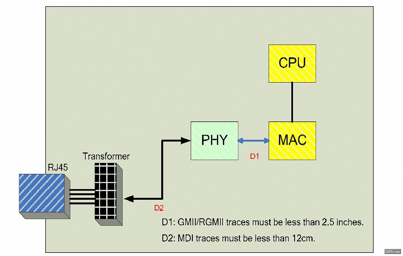 网络通信路径常可总结为:网络数据–>RJ45接口–>网络变压器–>网络PHY芯片–>MAC–>CPU,如图1。其中网络变压器到PHY之前传输接口一般为MDI,而PHY到MAC之前的传输接口一般包括有MII、RMII、SMII、SSMII、SSSMII、GMII、RGMII、SGMII、TBI、RTBI、XGMII、XAUI、XLAUI等,下面我们以RTL8211E为例对网络通信路径接口做一次梳理与总结: