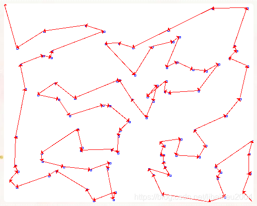 如上图所示:有这么多的点集,通过遗传算法求解可得到优化后的路径。
