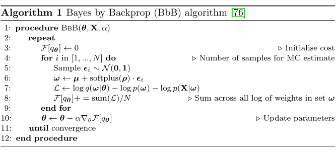 综合上面提到的贝叶斯的反向传播算法的细节,会有如下完整的算法流程图。
