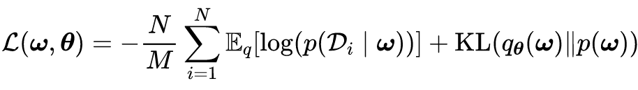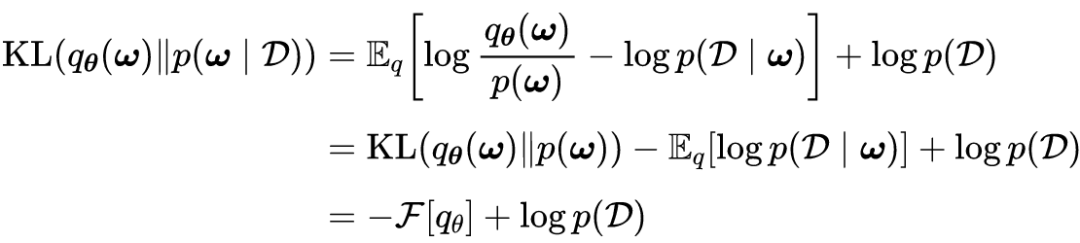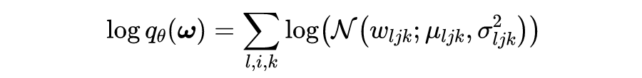 在该 BNN 中,可训练参数为 和 。由于采用全因子分布,则近似后验概率的对数可以表示为: