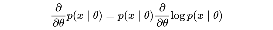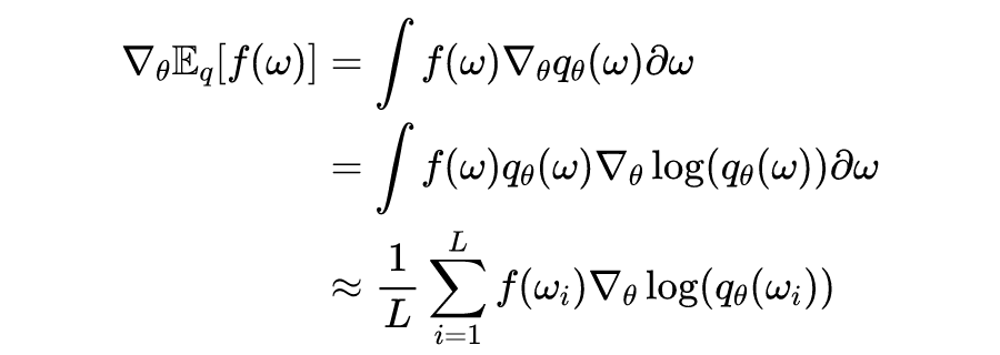 利用这个性质,可以对一个期望的导数形成蒙特卡罗估计,这在变分推理中是经常被使用,具体的推导过程如下所示: