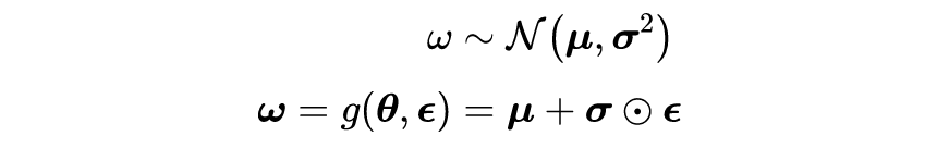 假设全因子高斯后验函数 ,其中 用于确保标准差参数为正。由此,将网络中的权重 的分布重新参数化为: