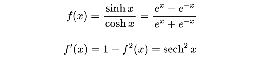 Tanh 函数是一种双曲正切函数,定义域为 R,值域为 ,函数图像为过原点严格单调递增,其函数和导数形式分别为:
