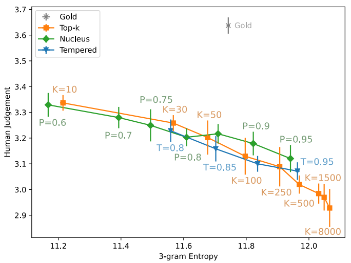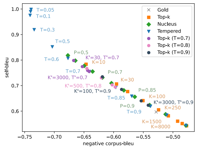系统性地比较了几种采样算法在文本生成上的效果,发现它们有很相似Q-D平衡性;