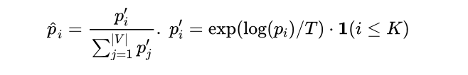 在解码的时候,不按照模型本身得到的每个词的概率采样,而是进行一定的变换,然后再采样,如果采样范围缩小,那么多样性就减少,但质量也会提高,如果采样范围扩大,多样性就会增大,但质量也会降低。