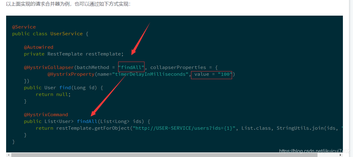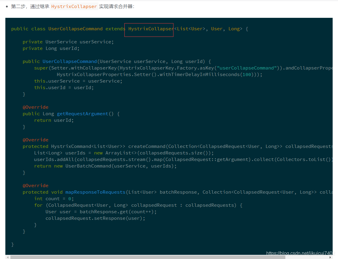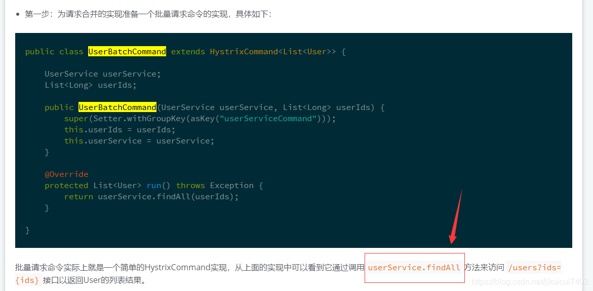 createCommand :该方法的 collapsedRequests 参数中保存了延迟时间窗中收集到的所有获取单个User的请求。通过获取这些请求的参数来组织上面我们准备的批量请求命令