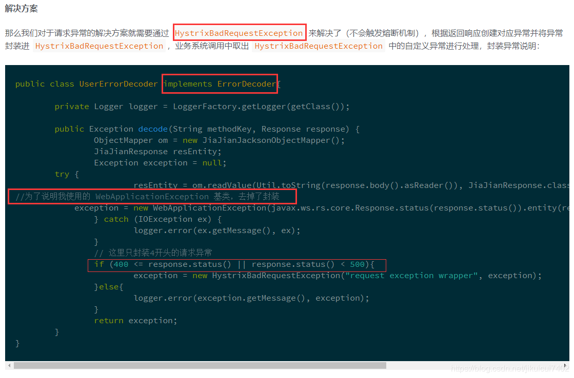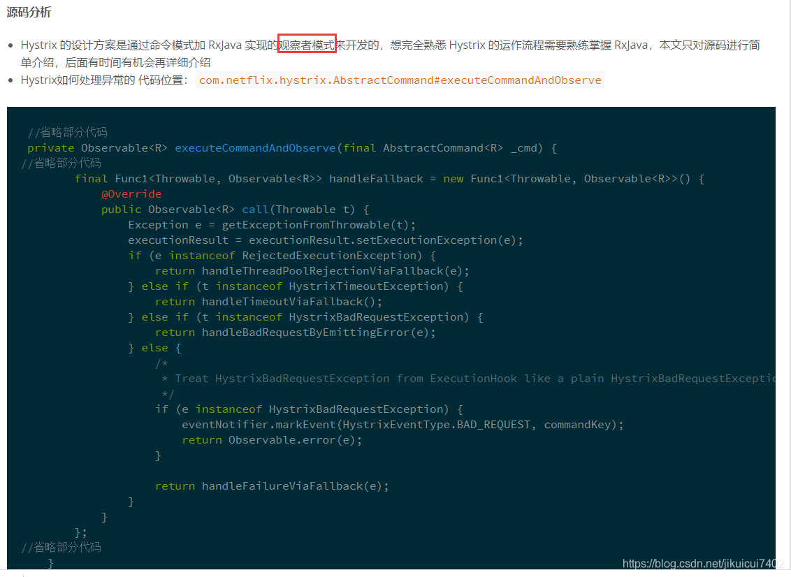 该类中该方法为发生异常的回调方法,由此可以看出如果抛出异常如果是 HystrixBadRequestException 是直接处理异常之后进行抛出(这里不会触发熔断机制),而不是进入回调方法