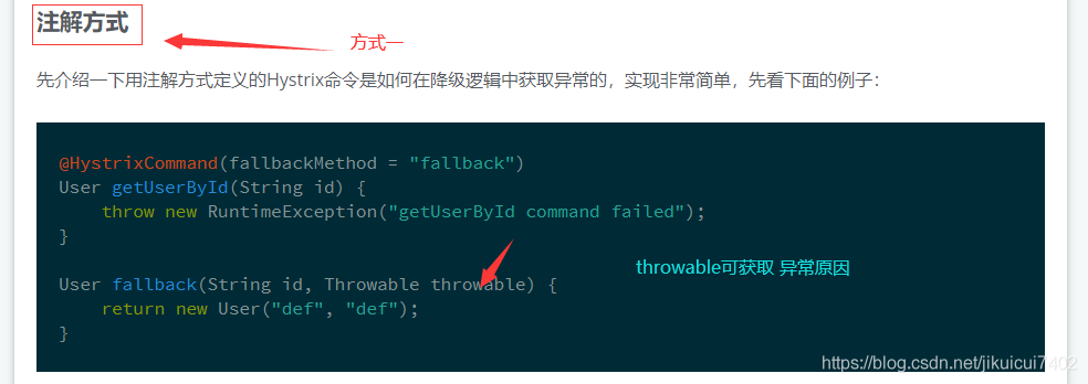 ** Hystrix两种不同** 获取触发的异常 的方式