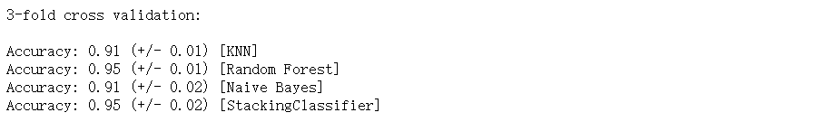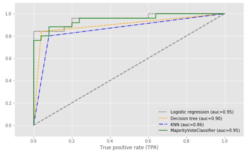 mv_clf = VotingClassifier(estimators=[('pipe1',pipe1),('clf2',clf2),('pipe3',pipe3)],voting='soft')