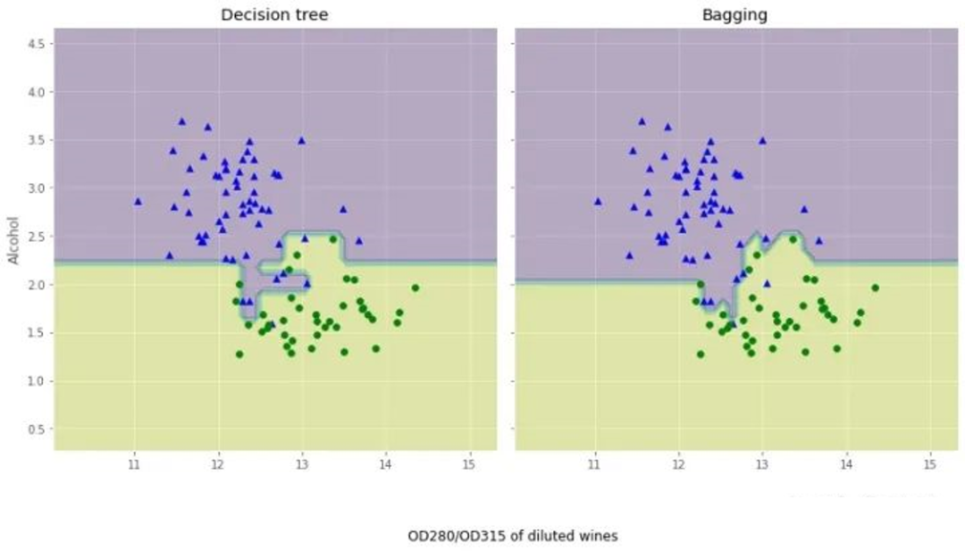 投票机制在训练每个分类器的时候都是用相同的全部样本,而Bagging方法则是使用全部样本的一个随机抽样,每个分类器都是使用不同的样本进行训练。其他都是跟投票方法一模一样!