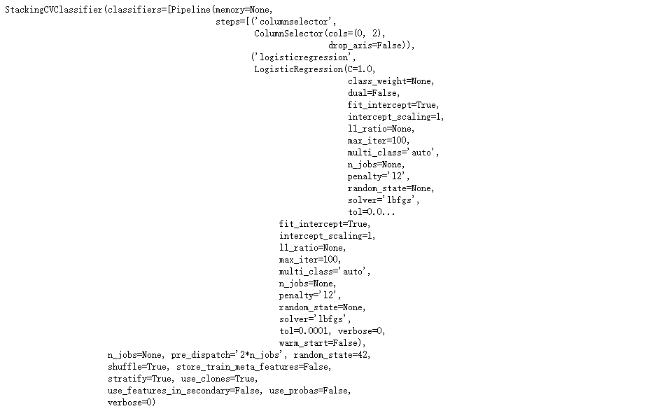 sclf = StackingCVClassifier(classifiers=[pipe1, pipe2],