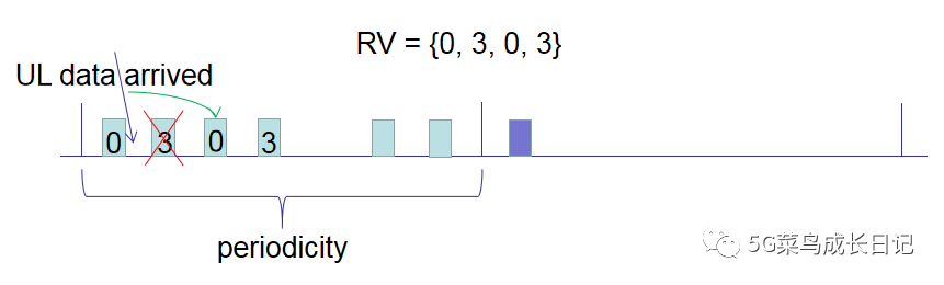 重复传输的时机选择,取决于repK-RV的配置和UL数据到达的时间点。