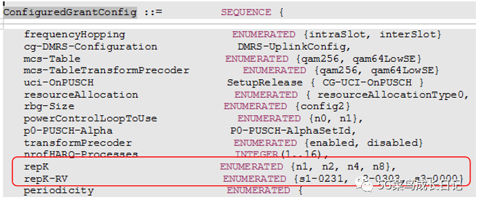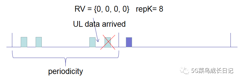 为了提高可靠性,类似于LTE中TTI Bundling,使用repetition,即同一个上行进程,使用不同的冗余版本发送多次。LTE的TTI Bundling分别使用冗余版本0、1、2、3传输4次,NR下repetition则通过repK配置传输的次数,repK-RV配置传输的冗余版本样式。