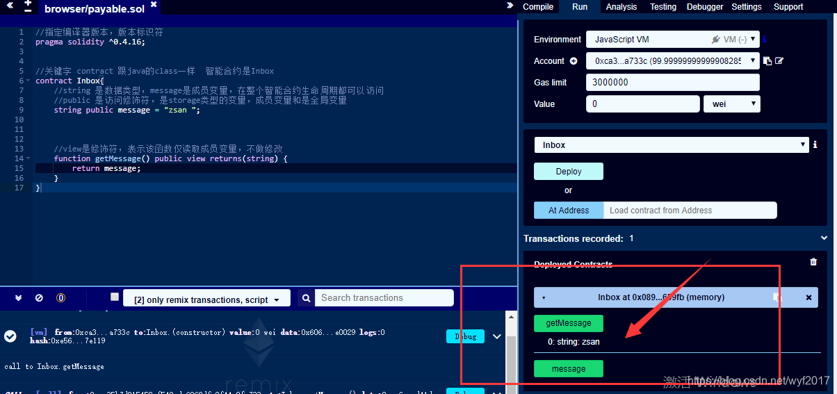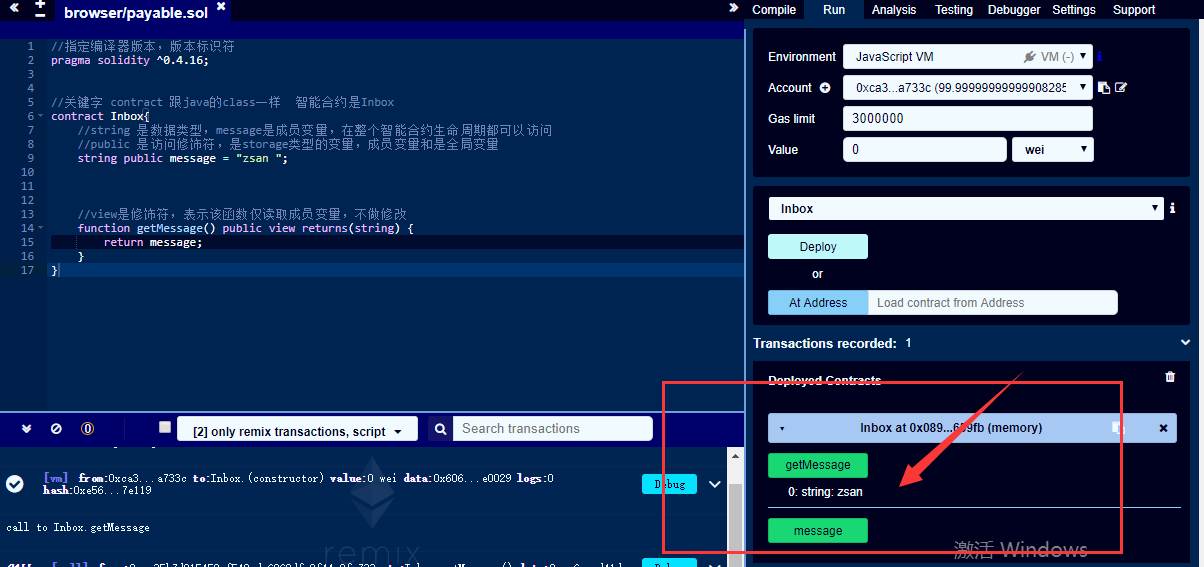//string 是数据类型,message是成员变量,在整个智能合约生命周期都可以访问