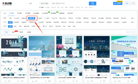 其实,想要做出一份满意的PPT、下载到喜欢的述职汇报类PPT模板并没想象中的那么难,小伙伴们可以试试这个职场人士必备的海量素材资源网站哦。“办公资源网”有多种不同分类的素材资源模板,其中PPT模板又以不同的场景、行业、风格区分开来,使用起来好用又便捷。