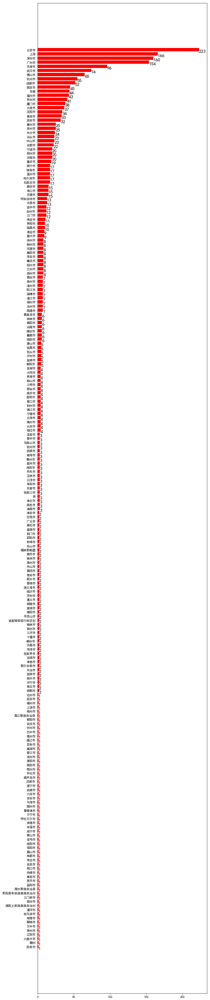 此结果图列举了麦当劳在中国城市所有店铺数在各个城市的数量有多少,从图中我们可以看出,“北上广深”四个城市的麦当劳店铺数都在 100 以上,稳居前四,并且他们都是一线大城市,那麦当劳店铺数会不会与城市等级有关呢? 针对问题一,我们做出如下可视化分析: