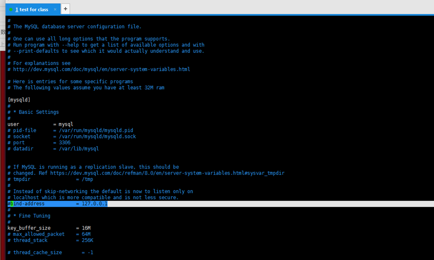 vi /etc/mysql/mysql.conf.d/mysqld.cnf